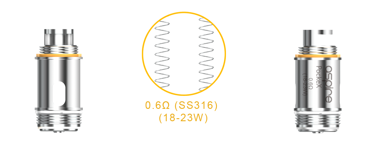 La résistance pockeX de la marque aspire est la résistance spécialement conçue pour la PockeX de Aspire. Son fil résistif est en acier inoxydable (SS316) et elle est munit de la nouvelle technologie U tech. Sa résistance est de 0,6 ohm ce qui permet de vapoter entre 18 et 23 ohm.